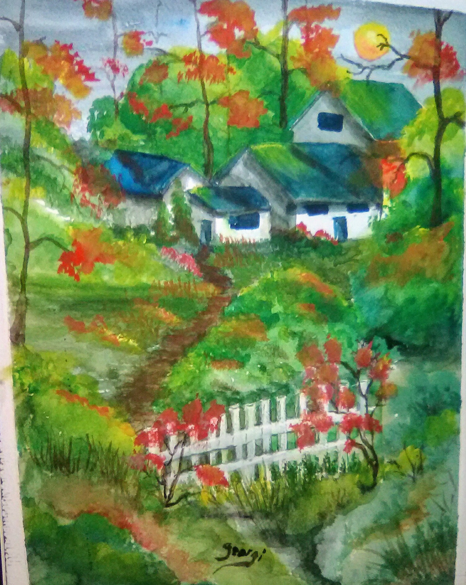 "The Village" an 11"x14" is a modern art print made from an original, watercolor artwork from my own gallery. It is the perfect housewarming gift and it looks awesome in your home wall decor.